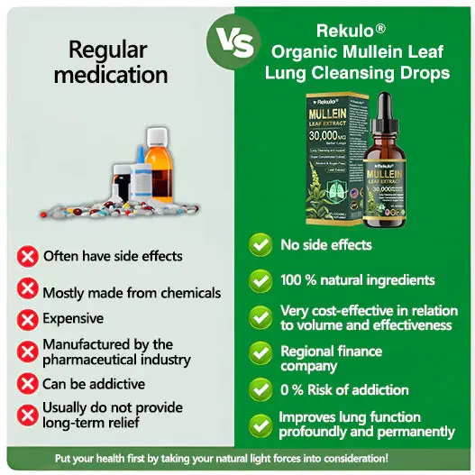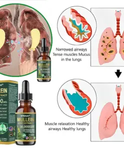 ใProfessionalใ Organic Lung Cleansing Mullein Leaf Extract Drops – Cleans trachea and lung residues – Repairs alveoli – Regenerates tracheal tissue – Combats allergies/asthma – Regains breathing smoothness – Assists in the treatment of chronic obstructive pulmonary disease (COPD)