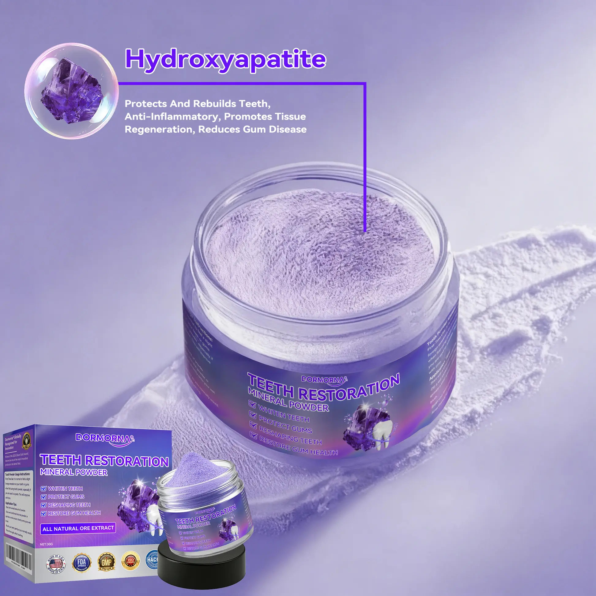 ๐๐จ๐ซ๐ฆ๐จ๐ซ๐ง๐ยฎ ๐๐๐๐ญ๐ก ๐๐๐ฌ๐ญ๐จ๐ซ๐๐ญ๐ข๐จ๐ง ๐๐ข๐ง๐๐ซ๐๐ฅ ๐๐จ๐ฐ๐๐๐ซ eliminates 99.99% of bacteria, resolves bad breath, removes plaque and tartar, treats gingivitis and periodontitis, relieves toothache, prevents and treats cavities, restores tooth enamel, stimulates reparative dentin formation, and supports the regeneration of lost teeth.
