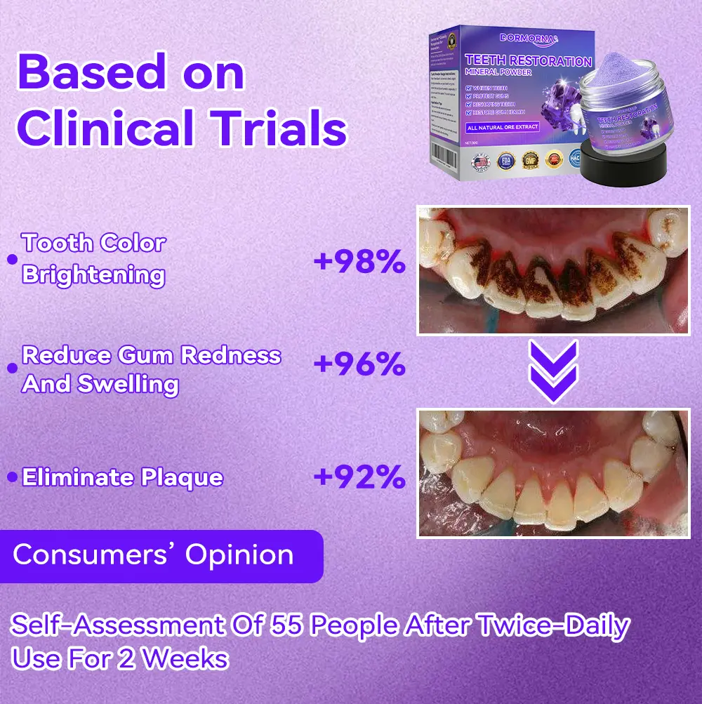 Mineral elements help kill bacteria and eliminate harmful bacteria within the gums, helping to repair cavities and promote long-term oral health. ๐๐จ๐ซ๐ฆ๐จ๐ซ๐ง๐ยฎ ๐๐๐๐ญ๐ก ๐๐๐ฌ๐ญ๐จ๐ซ๐๐ญ๐ข๐จ๐ง ๐๐ข๐ง๐๐ซ๐๐ฅ ๐๐จ๐ฐ๐๐๐ซย delivers essential nutrients directly to the teeth and gums for rapid absorption, promoting fast cavity recovery, cavity repair and improved overall gum health.
