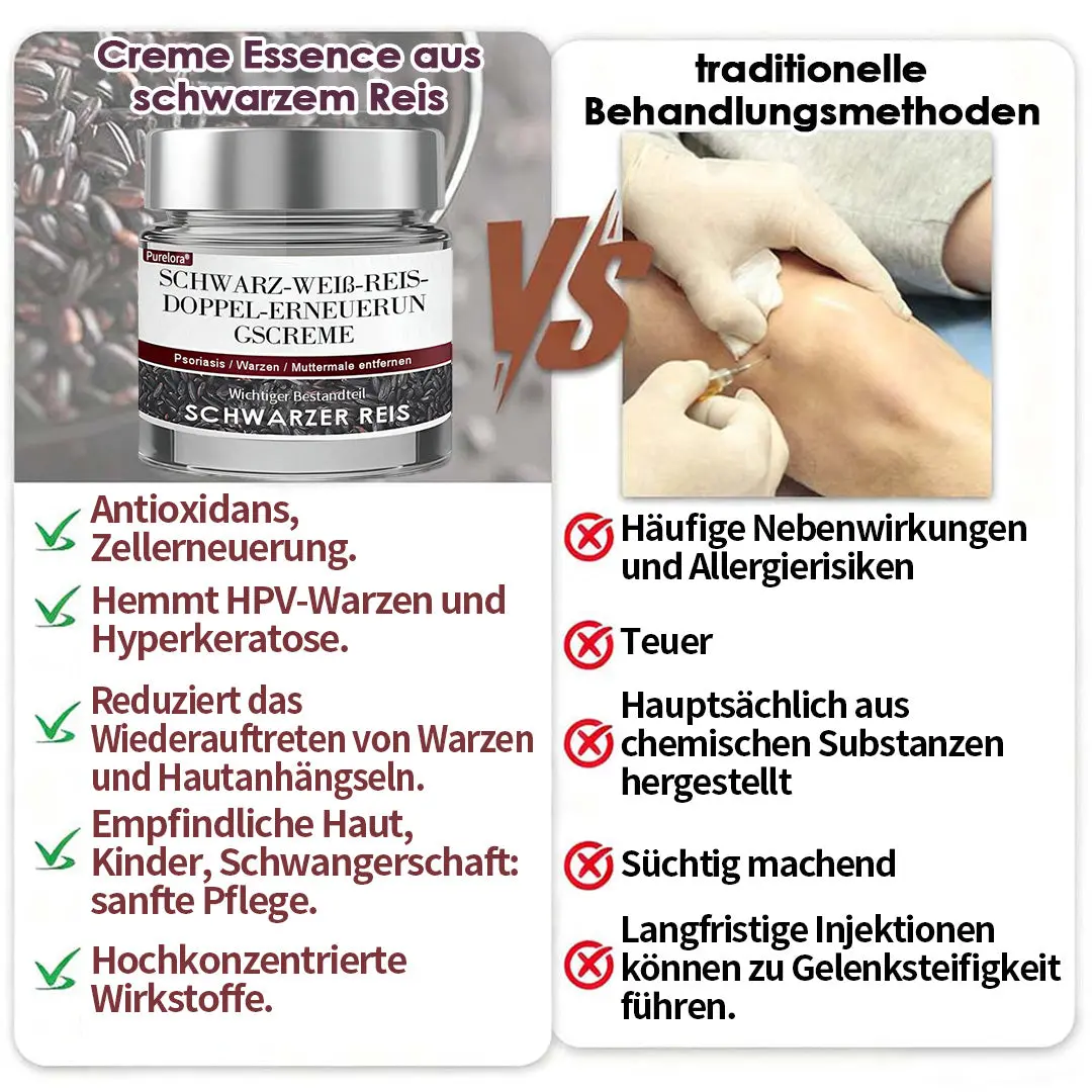 Schwarzer Reis ist reich an natürlichen Anthocyanen und verschiedenen aktiven Enzymen und bietet hervorragende antioxidative und zellpflegende Eigenschaften. Studien zeigen, dass die Enzyme im schwarzen Reis den Keratinstoffwechsel sanft fördern und gezielt wucherndes Gewebe an der Hautoberfläche abbauen. Sie spielen eine Schlüsselrolle bei der Entfernung von Hautanhängseln und Warzen. Im Vergleich zu herkömmlichen chemischen Peelings wirken die Enzyme aus schwarzem Reis sanfter: Sie erweichen und lösen überschüssiges Gewebe effektiv auf und minimieren gleichzeitig Irritationen und Schäden an gesunder Haut. Dadurch wird die Entfernung sanfter und angenehmer und eignet sich für empfindliche Bereiche und verschiedene Hauttypen.