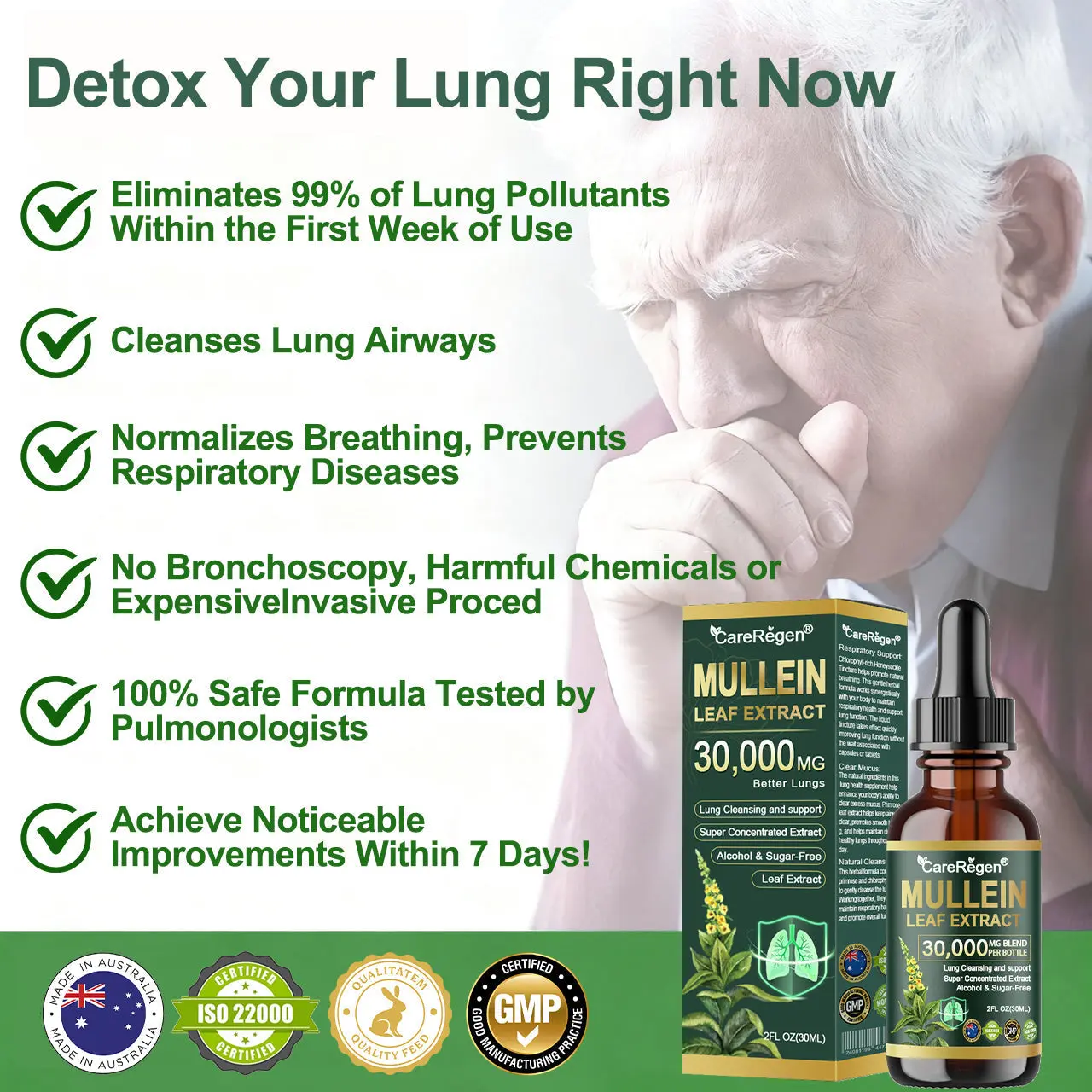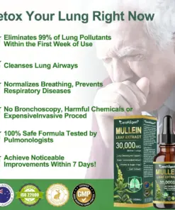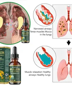 ใProfessionalใ Organic Lung Cleansing Mullein Leaf Extract Drops – Cleans trachea and lung residues – Repairs alveoli – Regenerates tracheal tissue – Combats allergies/asthma – Regains breathing smoothness – Assists in the treatment of chronic obstructive pulmonary disease (COPD)