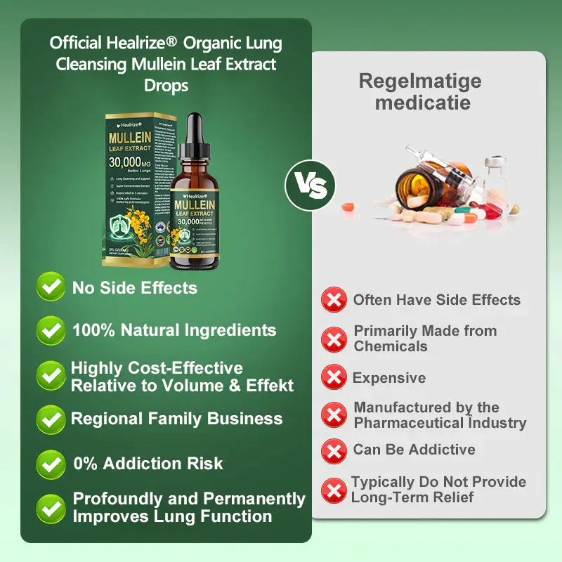 After consulting with multiple doctors and not getting any advice beyond โjust rest,โ I decided to do my own research. I found that a lot of studies pointed toward mullein, which fit with my preference for natural remedies. So, I decided to try ย Healrizeยฎ ย Organic Lung Cleansing Mullein Leaf Extract Drops.