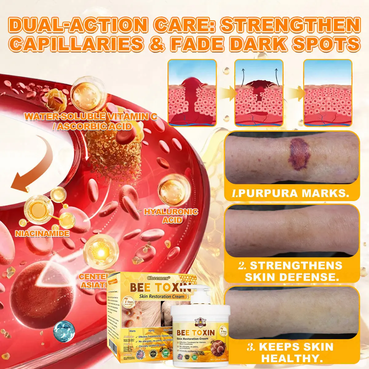 Clinically tested by dermatologists, Cheemex® Bee Venom Skin Restoration Cream can improve dryness, inflammation, itching, and signs of aging within 7 days.