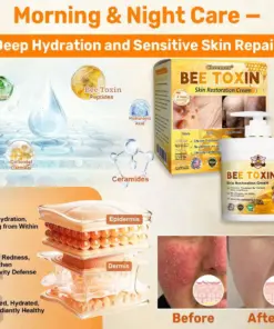 In response, Cheemex®Bee Venom Skin Restoration Cream was scientifically developed under rigorous standards. Its formula combines the restorative power of natural Bee Venom and grass-fed tallow, synergized with hyaluronic acid, collagen, vitamin C, centella asiatica, and over ten other potent bioactive ingredients. Together, they deliver multi-dimensional care — from deep hydration and barrier repair to anti-inflammatory relief, itch control, metabolic renewal, tissue restoration, and anti-aging nourishment. Clinically validated and produced in GMP-certified facilities compliant with U.S. and EU safety standards, this cream offers a safe, effective, and drug-free multi-repair skincare solution for dryness, inflammation, irritation, and signs of aging — restoring comfort, resilience, and lasting skin health.