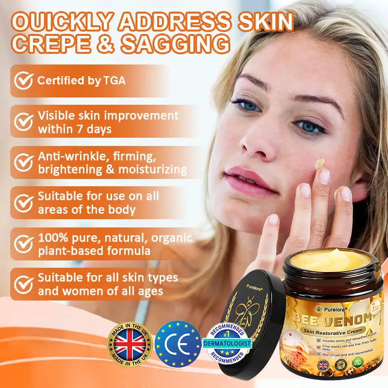 ✅ Suitable for All Skin Types: Regardless of your skin type,Purelora® Bee Venom Restorative Cream is designed to cater to everyone, including those with sensitive skin.
