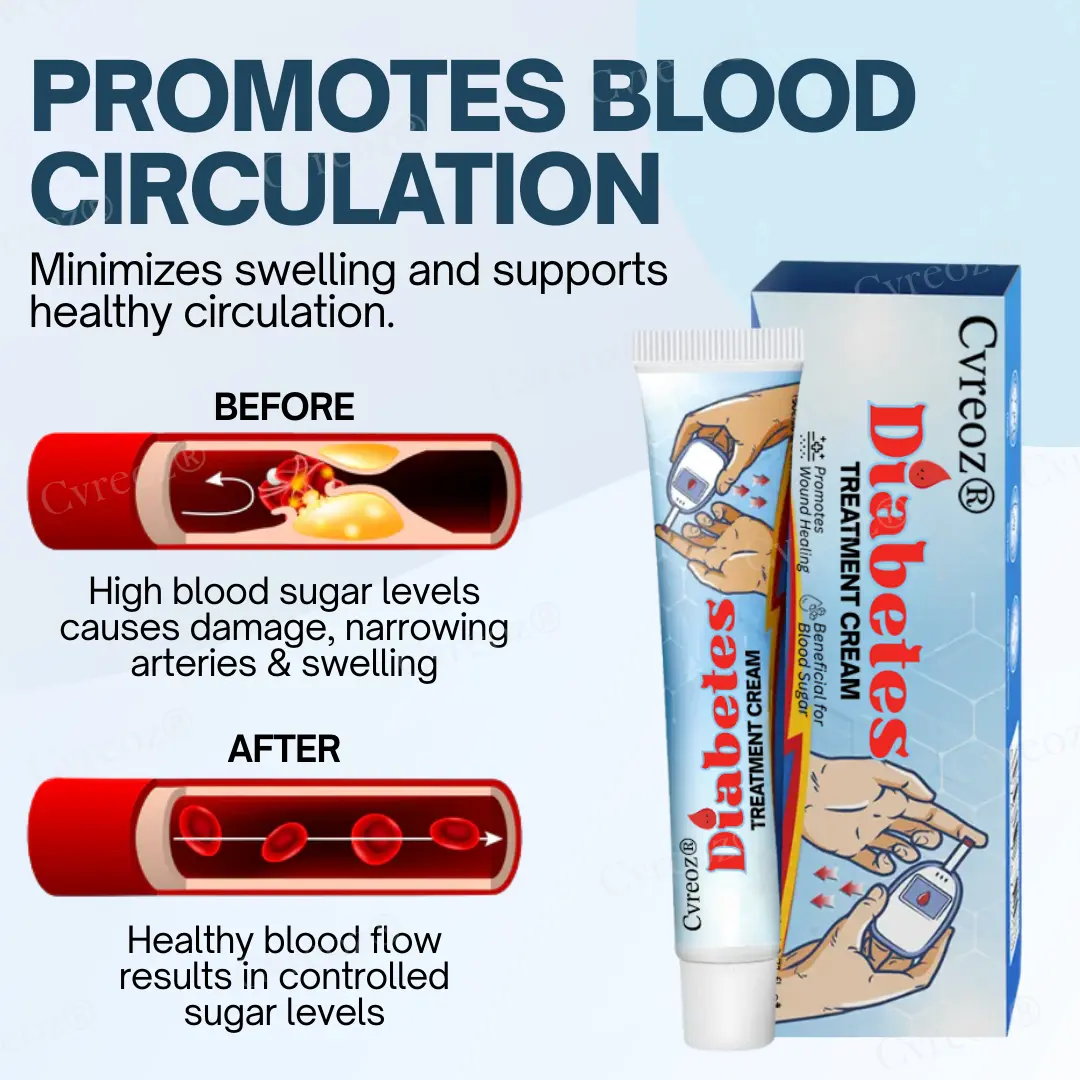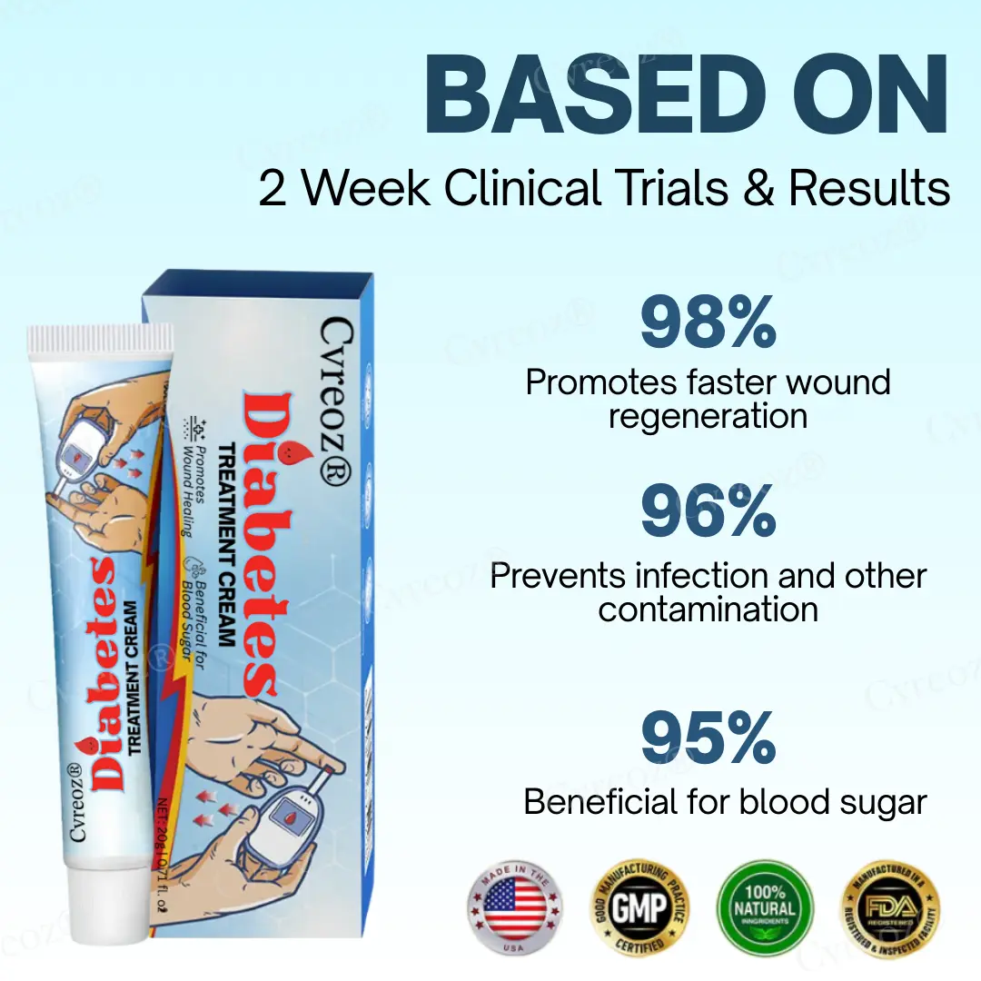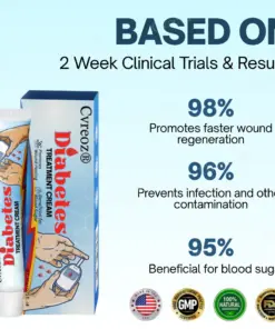 Diabetic wounds can be difficult and dangerous to manage due to poor circulation, nerve damage, and high blood sugar levels that delay healing and increase the risk of infection. Left untreated, even minor cuts can turn into serious complications, including ulcers or amputations. That’s why doctors recommendCvreoz® Diabetes Treatment Cream—a targeted solution specifically formulated for diabetic skin. In a clinical trial with 100 patients suffering from foot ulcers and neuropathic symptoms, and 98% reported significant wound healing within two weeks.