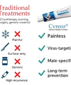 A: Cvreoz® GentX Relief Cream is specifically formulated to remove male genital warts and eliminate the underlying HPV virus. It offers a painless, non-invasive, and clinically backed treatment that works below the skin’s surface.