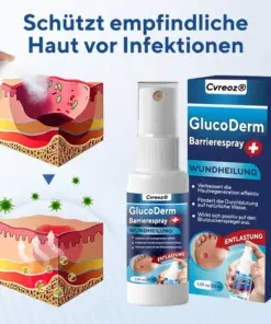 Cvreoz® GlucoDerm Barrierespray – Fortschrittliche Pflege für schnellere Heilung, Infektionsschutz und umfassende Linderung diabetischer Wunden