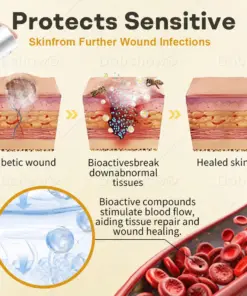 Healrize®GlucoShield Bee Venom Wound Spray is designed to help people with diabetes keep their feet healthy. It boosts blood circulation, helps heal foot ulcers and sores faster, and provides gentle care for diabetic skin. The cream hydrates deeply to prevent dryness and cracking, while also protecting sensitive skin from infections. Its smooth, quick-absorbing formula makes it easy to use every day, giving you an effective way to care for your feet.