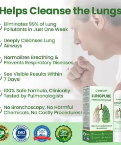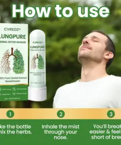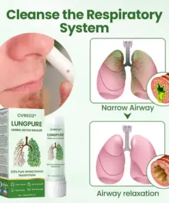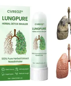 CVREOZ® LungPure Herbal Detox Inhaler is a powerful herbal solution designed to quickly detoxify your lungs, improve your breathing, and promote overall respiratory health. It effectively eliminates toxins from smoking and pollution, restoring your lungs to their healthiest state. Backed by top pulmonologists, this inhaler delivers fast relief in 15 minutes, easing discomfort and improving lung function. With regular use, it repairs lung tissue and restores full lung health in just 4 weeks.