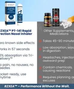 RZXEA™ PT-141 delivers rapid vasodilation and neural activation for instant erectile support while maintaining long-term prostate wellness. Our advanced nasal delivery bypasses the digestive system, sending active compounds directly to your bloodstream for full hardness in 57 seconds – not hours.