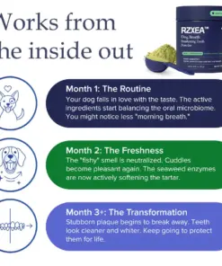 You love your dog, but you hate their breath. And let’s be honest—you aren’t going to brush their teeth every day. RZXEA™ fixes the problem where it starts, zero stress involved.